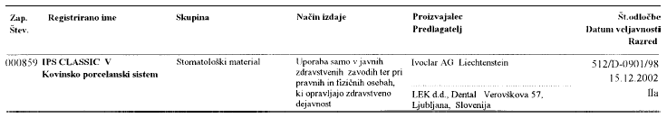 medicinskih pripomočkov skupine D, za katere je bilo od 30. 6. 1997 do 15. 12. 1997 izdano dovoljenje za promet