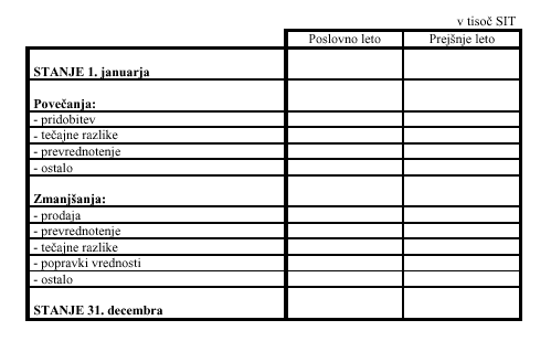 11.1. Gibanje posebnih rezervacij ter odpisov po vrstah terjatev in naložb: