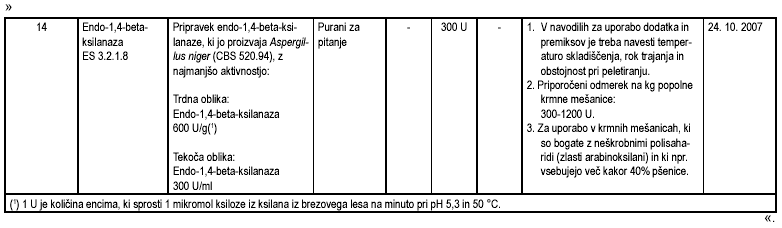 V prilogi 1 se v seznamu II pod »10. ENCIMI« v razpredelnici »Št. ali ES Št. 14« na koncu razpredelnice doda besedilo, ki se glasi: