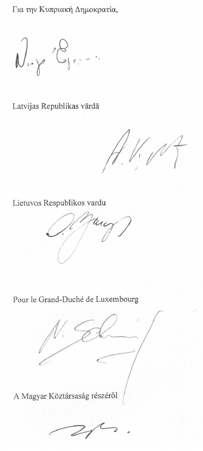 This Agreement is drawn up in duplicate in the Czech, Danish, Dutch, English, Estonian, Finnish, French, German, Greek, Hungarian, Italian, Latvian, Lithuanian, Maltese, Polish, Portuguese, Slovakian, Slovenian, Spanish, Swedish and Hebrew languages.