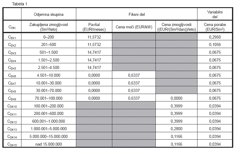 Osnovna cena za distribucijo znaša: 0,2129 EUR/Sm3.