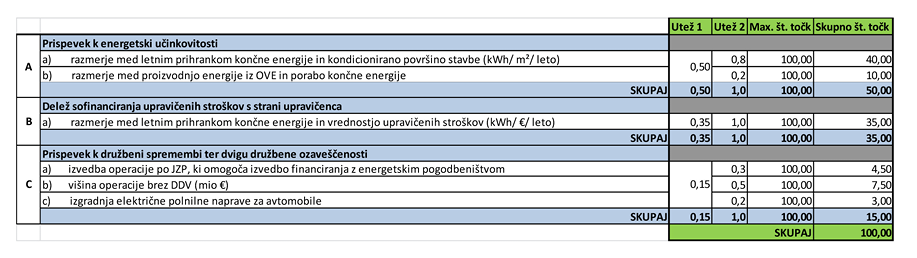 Višje število skupnih točk pomeni višjo uvrstitev na listi operacij, ki bodo sofinancirane iz naslova energetske prenove stavb.