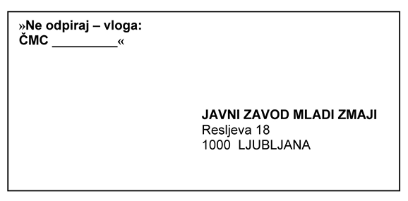 Posamezna vloga mora biti poslana priporočeno v zaprti ovojnici in z obvezno navedbo ČMC-ja, v katerem se bo izvajala aktivnost, na prednji strani v naslednji obliki: