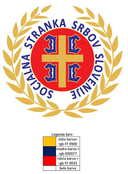 V register političnih strank se vpiše politična stranka Socialna stranka Srbov Slovenije, s kratico imena SSSS in s sedežem v Ljubljani, Celovška cesta 134. Znak stranke sestavlja krog z venčkom zlate barve (rgb FF 9900), v katerem je v krogu izpisano ime stranke SOCIALNA STRANKA SRBOV SLOVENIJE z velikimi tiskanimi črkami (Calibri) v modri barvi (rgb 000077), pod njim se nahaja izpopolnjen rdeč krog (rgb FF 0033), obrobljen z zlato barvo (rgb FF 9900), na katerem se nahaja križ v zlati barvi (rgb FF 9900), v kotih križa levo in desno spodaj in zgoraj pa se nahaja (okrašena) črka C v beli in modri barvi (rgb 000077) z zlato obrobo (rgb FF 9900).