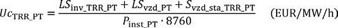 LcRN | specifična letna cena proizvodnje jalove moči za posamezno tehnologijo (EUR/Mvar); |