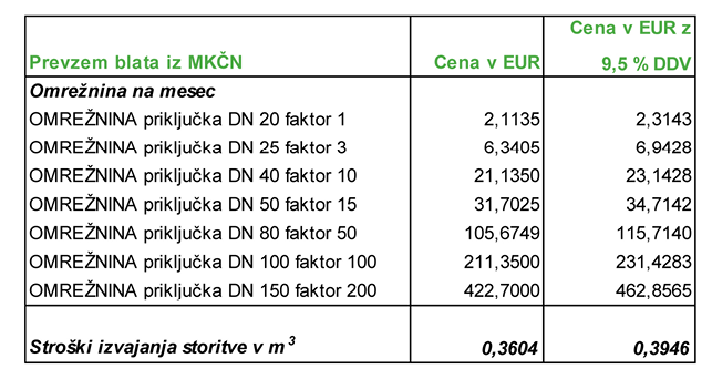 Predračunska lastna cena prevzema blata iz MKČN za leto 2020 za vse uporabnike: