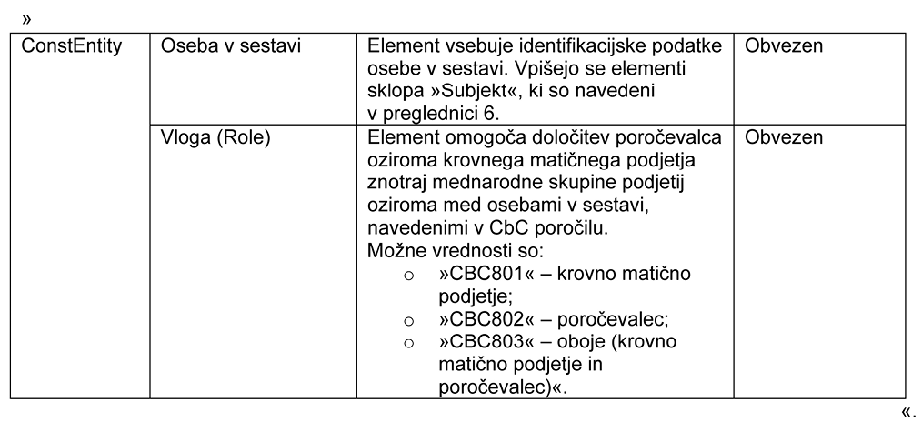V Prilogi 21 se v delu navodila z naslovom »1.3 TELO SPOROČILA« v preglednici 2 druga vrstica spremeni tako, da se glasi: